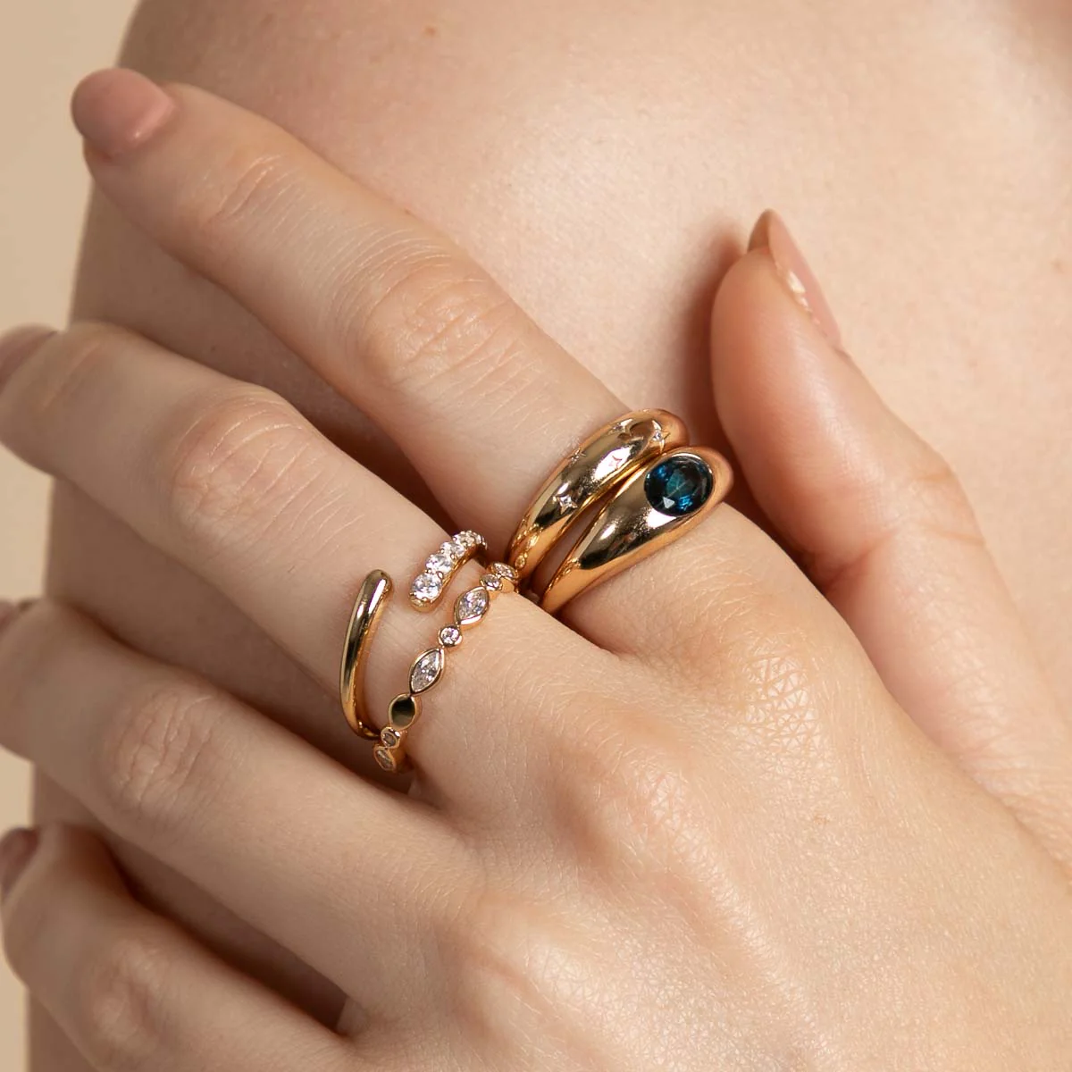 Navette Crystal Band Ring in Gold